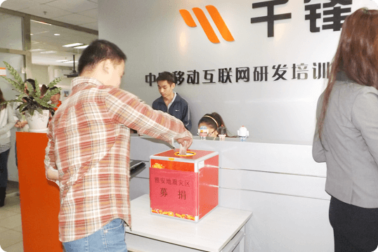 千鋒教育發(fā)起“雅安,你要平安-為雅安地震災區(qū)捐款”的倡議,號召全體員工及學員捐款,通過深圳壹基金公益基金會捐助給災區(qū)。